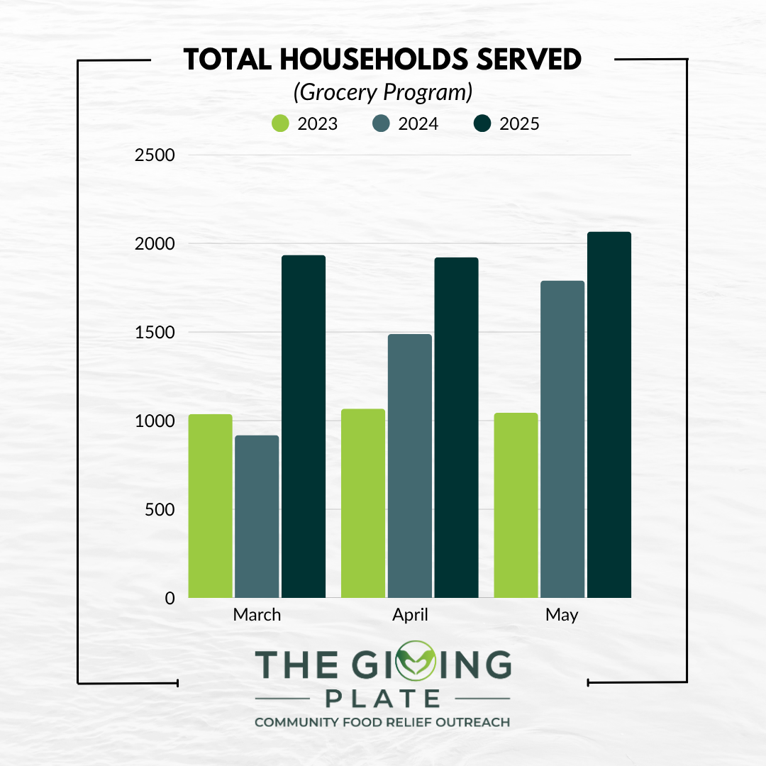 We are already serving 30% more families in 2025 than we did on average in 2024. And last year, we experienced a 40% increase over 2023. The need is growing—exponentially. Just take a look at this graph comparing the past three months in our Grocery Program: